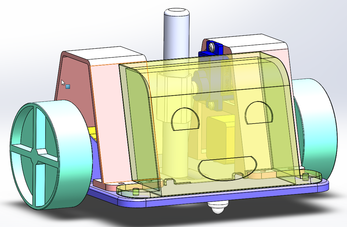- un robot dessinateur motorisé autonome en énergie qui possédera une partie mobile pour déplacer un crayon, d'un diamètre de 8mm à 15mm, afin de tracer des formes sur papier. Il exécutera les commandes des blocs programmes envoyées via le bloc maître.
