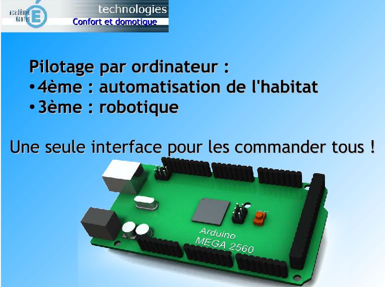Il s'agit là de l'ensemble des documents créés par les formateurs, avec toute la progression pédagogique pour une année de 4ème axée sur l'interface arduino pour le pilotage à distance des systèmes.