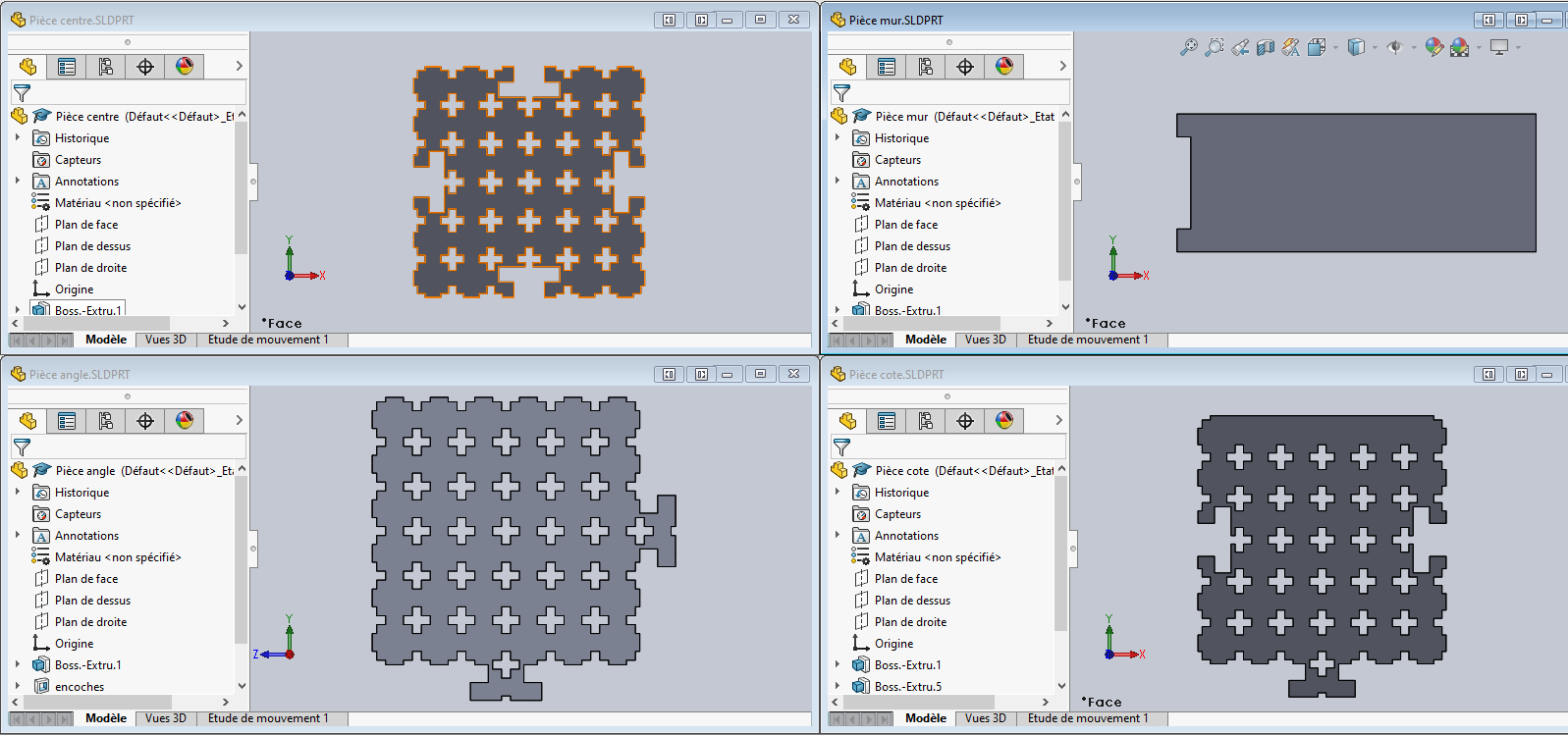 Exemples de travaux d'élèves, modélisés sous Solidworks ou fabriqués :