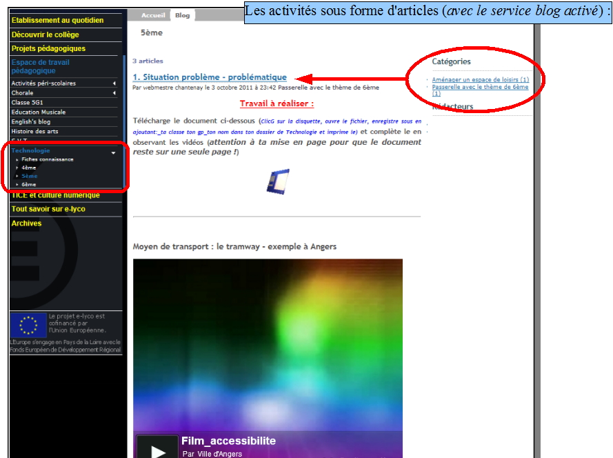 Le triage des activités s'effectue de la façon suivante : on récupère l'adresse URL de chaque article, on fait les liens dans la partie souhaitée puis le service « Blog » est désactivé pour que personne (hormis le gestionnaire, donc l'enseignant) ne puisse modifier les articles. Qu'on se rassure, si le service devient invisible, les articles sont toujours accessibles.