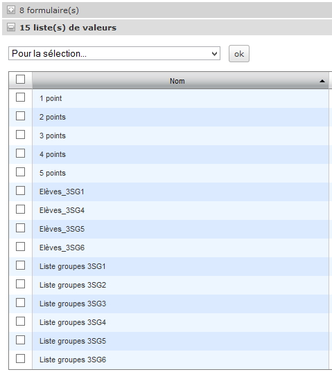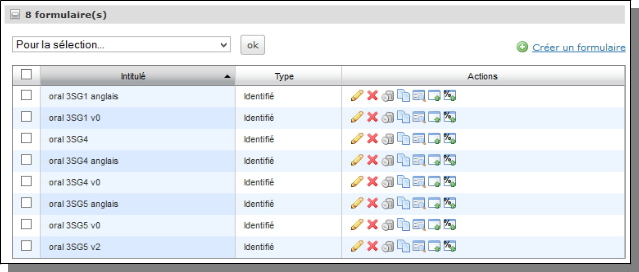 Grâce à la trousse à outils, l'enseignant peut gérer les formulaires : les créer, les supprimer, les copier, les vider, extraire les informations.