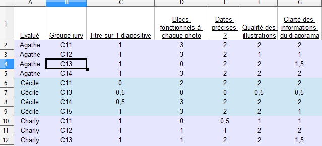 Il en est tout autrement lors d'une co-évaluation, où chacun évalue ses pairs : à moins de consulter toutes les grilles - ce qui constitue une perte de temps considérable - impossible de retirer une information pertinente !