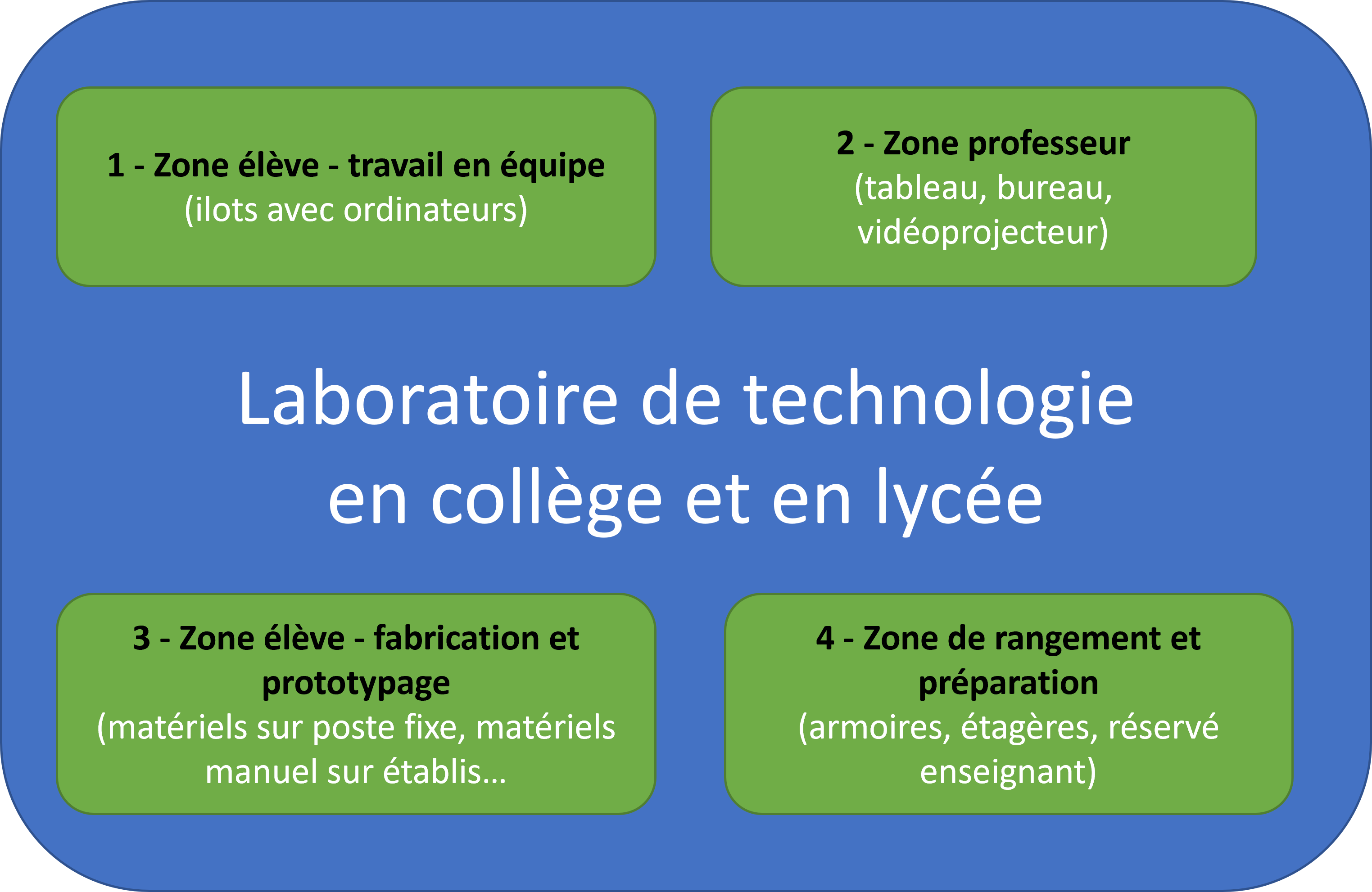 Dans les collèges, chaque laboratoire de technologie doit comprendre un espace de fabrication avec des équipements dédiés.