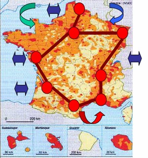 ![]() | 3.- Construire une carte pour mieux se l'approprier. A partir d'un fond de carte proposant les grands ensembles (« la tapisserie de fond »), les élèves doivent essayer de comprendre le pourquoi d'une telle organisation en plaçant des éléments explicites (codes cartographiques réfléchis). Le fait de « penser » la carte va permettre à l'élève de la comprendre pour mieux l'apprendre. Il pourra lire donc comprendre chaque carte qu'il rencontrera plus aisément. |