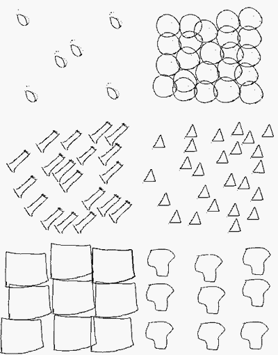 A partir d'une première forme choisie, il s'agit d'occuper l'espace de la diapo par répétition de la forme. Ensuite, les propositions sont comparées et triées. Les différentes compositions sont nommées (accumulation, saturation, remplissage, pavage, alignement, dispersion, juxtaposition, superposition, disposition aléatoire, verticale, horizontale, en oblique, symétrique, circulaire, centrée ou en périphérie) ; leur diversité est soulignée.