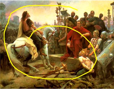 Expliquer aux élèves l'influence de telles œuvres en histoire et les doutes qui persistent sur ce qu'il s'est réellement passé en expliquant les divergences qui existent entre les historiens sur l'existence même de Vercingétorix. Amener les élèves à comprendre les conséquences dans l'esprit de chacun pour leur permettre d'avoir un esprit critique. D'autres documents seront étudier en aval pour montrer ces divergences et ces influences (même scène en BD avec Astérix, humour mais même statut pour Vercingétorix, autre peinture avec l'arrivée de Vercingétorix sur un cheval noir...)