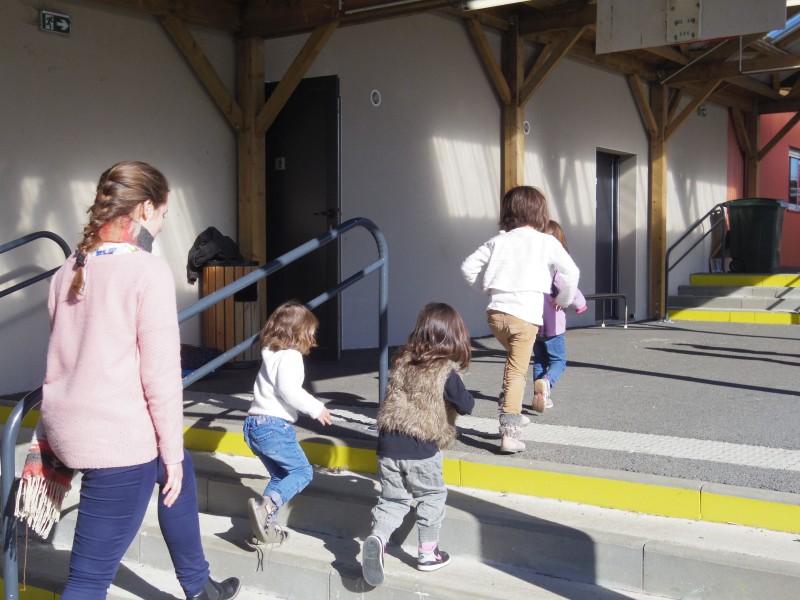L'enseignante fait découvrir l'espace proche aux enfants. Les enfants prennent des photos des différents lieux choisis. Cette séance est une première prise d'informations et permet de faire une description de ce que l'on voit.