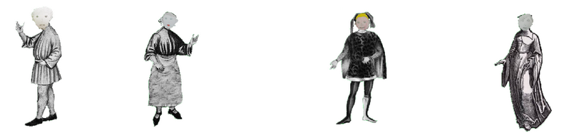 En s'appuyant sur des ressources documentaires sur l'habillement, les élèves représentent les personnages de leur histoire. Les dessins scannés sont ensuite assemblés à l'aide du logiciel de traitement d'image Photo filtre.