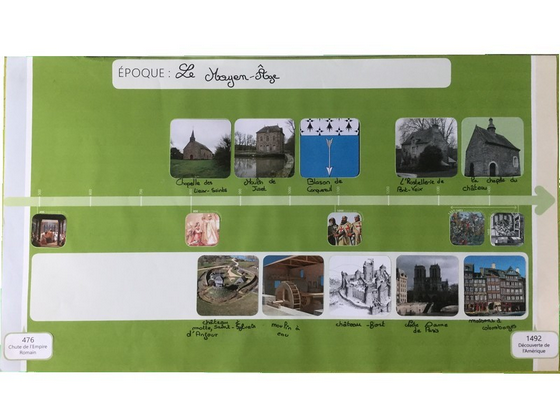 L'apport de ressources documentaires permet de relier les observations au contexte historique. Des récits historiques complètent les recherches et aident à la compréhension. la fabrication d'une frise historique permet de situer chronologiquement les grandes périodes. Les élèves associent les éléments du patrimoine local aux repères historiques. | |