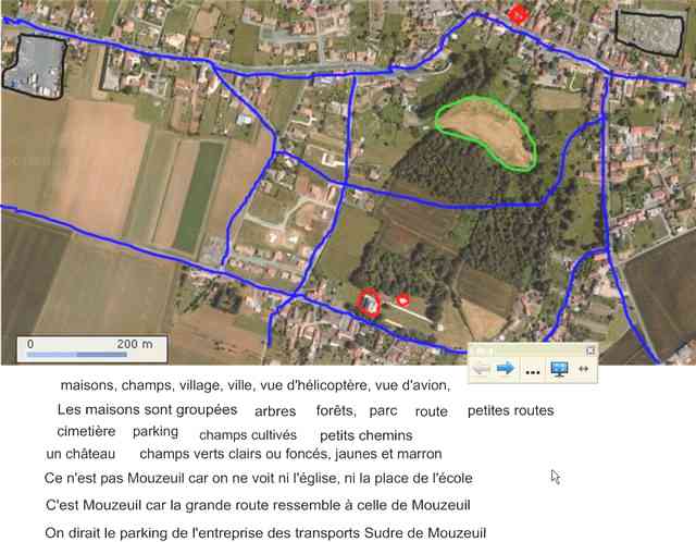 - Une autre vue aérienne est projeté au TNI. Une fiche d'observation est distribuée à chaque élève. Les élèves l'observent et remplissent la grille d'observation avec réinvestissement du vocabulaire déjà utilisé.