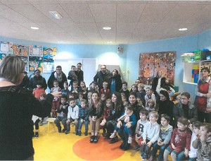 Groupe classe – 2 classes réunies pour la chorale – enseignante + ATSEM