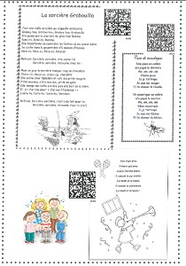 L'utilisation des QR codes s'est prolongée dans les cahiers de vies pour partager avec les parents les comptines apprises en classe.