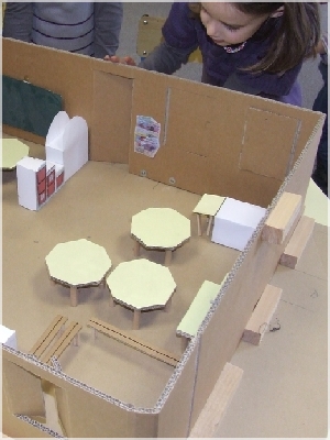 Construction d'une MAQUETTE en utilisant des éléments de jeux de construction (duplos, legos, ...) ou des éléments découpés dans du carton.