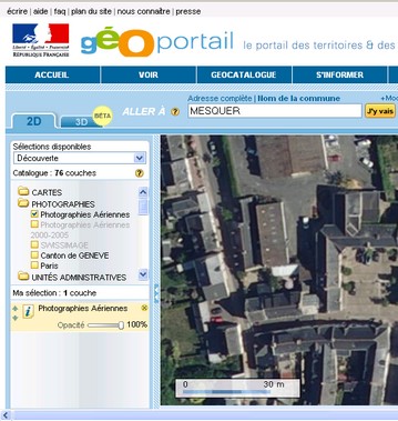 Utilisation de Géoportail sur le TBI : se repérer à partir de photos aériennes à différentes échelles.