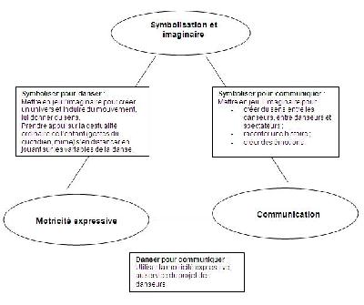 Les objectifs d'apprentissage portent sur trois pôles : Symbolisation et imaginaire - Motricité expressive - Communication