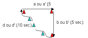 « Au premier signal, courir à 80% ''vite mais pas à fond'' sur a + b (ou a'+b'), au second signal, récupérer activement en marchant sur d (ou d') en venant se replacer au départ.