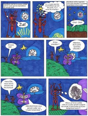 - Adaptation par chaque groupe de deux élèves d'un passage en une planche de BD. (sur un brouillon, puis sur la classe mobile, logiciel Impress).