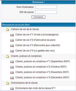 Utilisation de cahiers numériques individuels (accès avec un mot de passe personnel par élève) pour s'exercer à reconnaître et savoir nommer les lettres, les prénoms de la classe, les jours de la semaine, les couleurs, les nombres, les formes géométriques... Les connaissances de chaque élève sont ensuite consignées dans un cahier numérique individuel. Les dossiers collectifs et individuels sont aussi consultables à la maison par les enfants et les parents sur le site Internet de la classe.