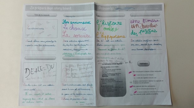 Le nombre de postes de fond de classe a limité le nombre d’élèves participant à l’enregistrement des capsules. Un roulement est donc prévu afin que chaque élève puisse, à un moment, participer à la création d’une capsule sous la guidance d’un élève « formateur ».