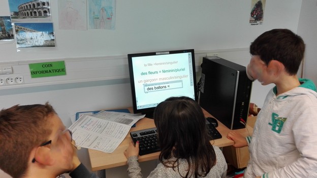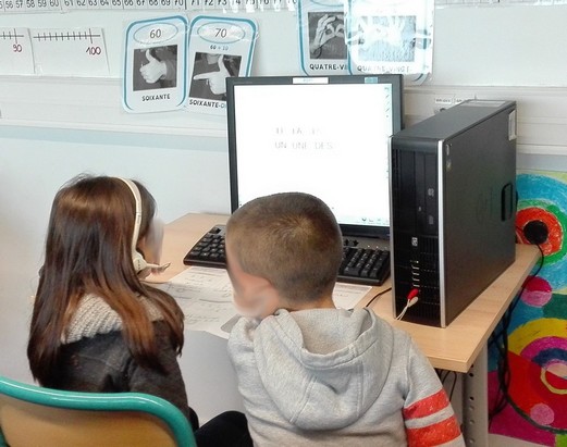 Les élèves peuvent créer des capsules sur les ordinateurs de fond de classe avec le logiciel Open-Sankoré et un casque-micro.
