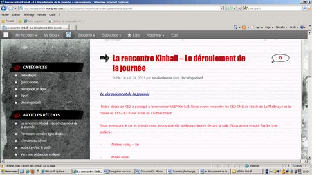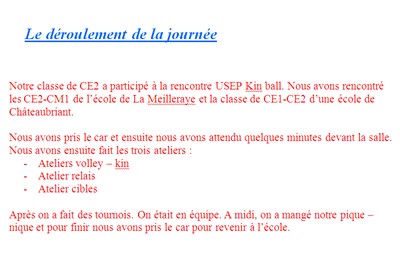 1 - Par groupe de 3 à 5 élèves : Choisir le thème de référence des articles (ici : sortie USEP Kinball).