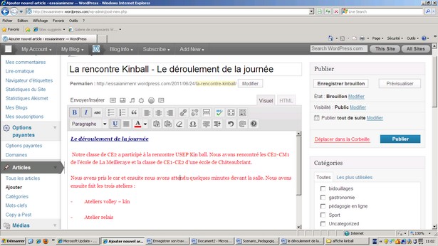 6 - Création d'un article au sein d'une catégorie sur le blog et insertion de la production du groupe.