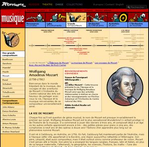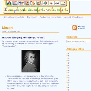 Suite à l'écoute d'un extrait de La Flûte Enchantée de Mozart, les élèves sont invités à rechercher des informations concernant ce compositeur sur des sites, pour ensuite en rédiger une biographie. Cette biographie servant de modèle à transposer pour d'autres artistes