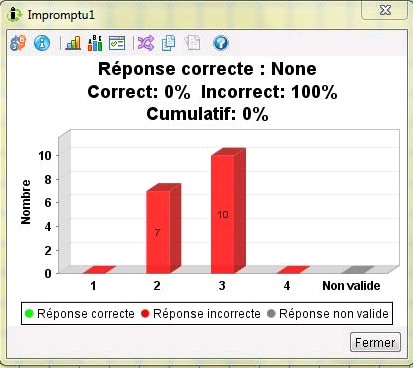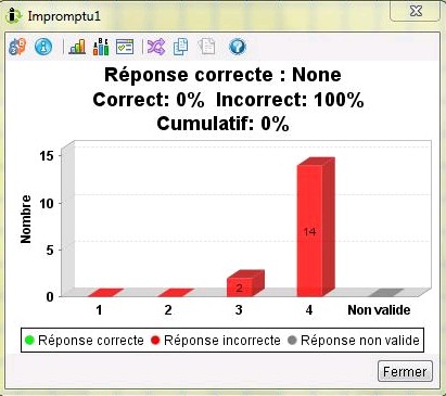 - Après le temps imparti, l'enseignant affiche le graphique des réponses. La correction se fait collectivement pour chaque item :