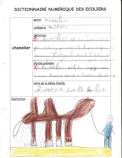 En amont, les élèves ont pu s'approprier l'objet dictionnaire en tant qu'outil de travail, découvrir comment est construite une définition, manipuler l'ordre alphabétique et poursuivre le travail de catégorisation amorcé dès la maternelle.