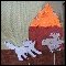 Atelier avec marionnette : réalisation des tableaux de l'histoire : * Le renard qui surveille la poule de chez lui. * Le renard qui arrive dans la maison de la poule. * Le renard qui repart avec la poule dans son sac. * La poule qui sort du sac grâce à ses ciseaux, pendant que le renard dort. * La poule qui met une pierre dans le sac. * La poule qui recoud le sac avec son fil et son aiguille. * Le renard qui rentre chez lui avec le sac (et la poule qui est chez elle) * Le renard qui se fait brûler par la pierre qui tombe dans la marmite.