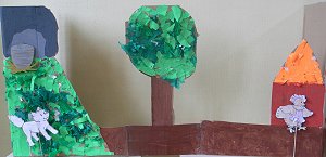 A l'aide des marionnettes, les élèves doivent positionner les personnages dans le décor pour reproduire les différents tableaux.