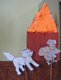 Séquence préalable : lecture suivie du conte La Petite Poule Rousse ; préparation des décors.