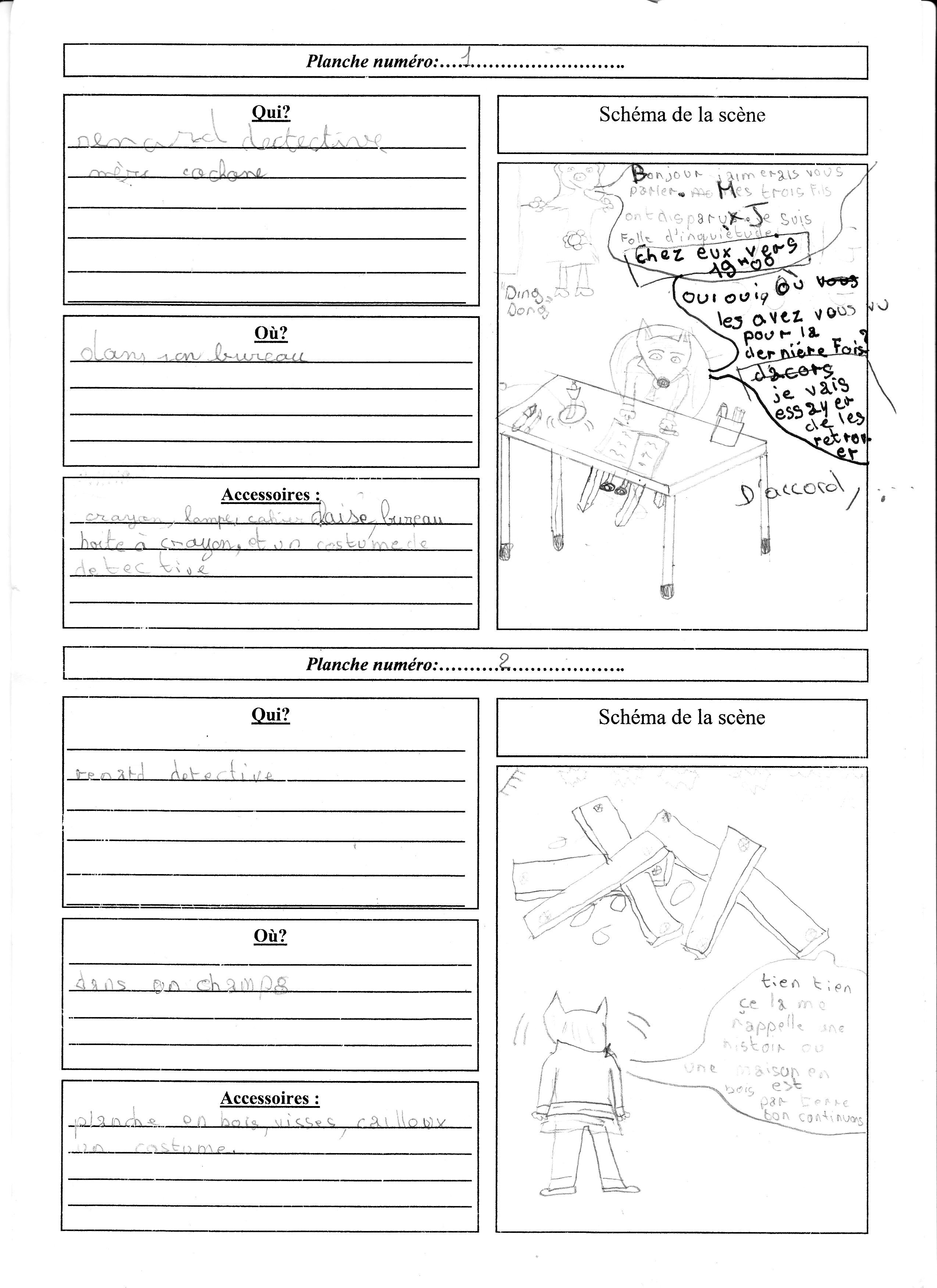 Réalisation de quatre storyboard et des scripts (écriture des dialogues, préparation des bulles) cf document ...