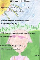Associer deux productions écrite (portrait chinois (« Si j'étais..., je serais..., je ferais...)respectant un certains nombres de consignes (nombre de strophes, mode conditionnel, terme générique puis spécifique,rimes) et plastique (autoportrait aux crayons, pastels et à l'encre)pour pouvoir les publier en ligne sur le blog de l'école pour l'alimenter, faire partager ce travail aux familles et répondre aux demandes du projet d'école.