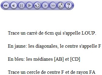 La fonction lecture du logiciel, permet de décomposer les étapes de réalisation de la figure et visualiser la méthode de construction utilisée par l'élève. Cela permet de rappeler le bon usage des outils à utiliser et