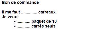 d) synthèse avec mise en évidence que le nombre de paquets de 10 et de carreaux seuls et le nombre d'unités se voient dans la commande
