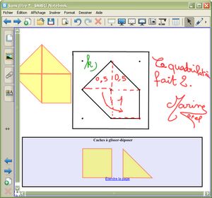 Le TNI favorise les travaux de regroupement, il permet un travail précis et rigoureux difficile à attendre d'un élève sur tableau noir (manipulation malaisée des outils de traçage). Les fonctionnalités de Notebook permettent de transformer les figures complexes et ainsi de mettre en évidence des solutions pressenties.