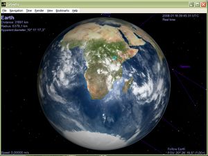L'éclairage des astres s'effectue en temps réel, on peut donc voir la Terre en partie dans l'ombre en fonction de l'heure de la journée. On personnalise l'affichage à loisirs en masquant certains astres, en filtrant l'affichage sur une distance ou encore en appliquant un effet d'antialiasing.