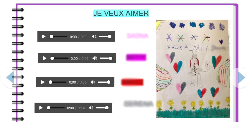 Chaque page de poésie contiendra les enregistrements de plusieurs élèves