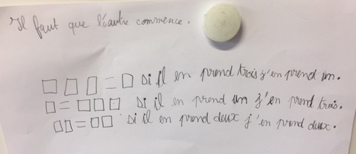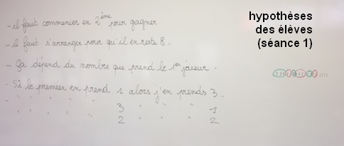 Si l’hypothèse « pour gagner il faut laisser l’autre joueur commencer » n’est pas évoquée, l’enseignant la propose. Elle n’est cependant pas la seule condition.