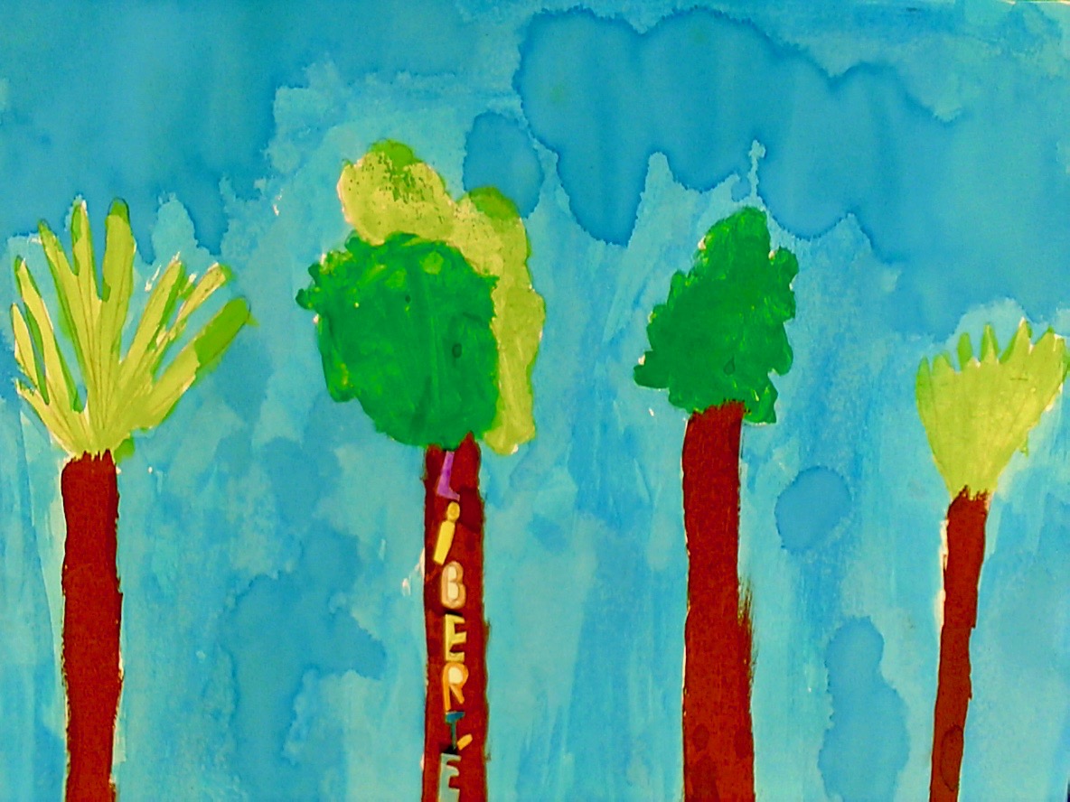 Dessin d'enfants avec des arbres et le mot liberté
