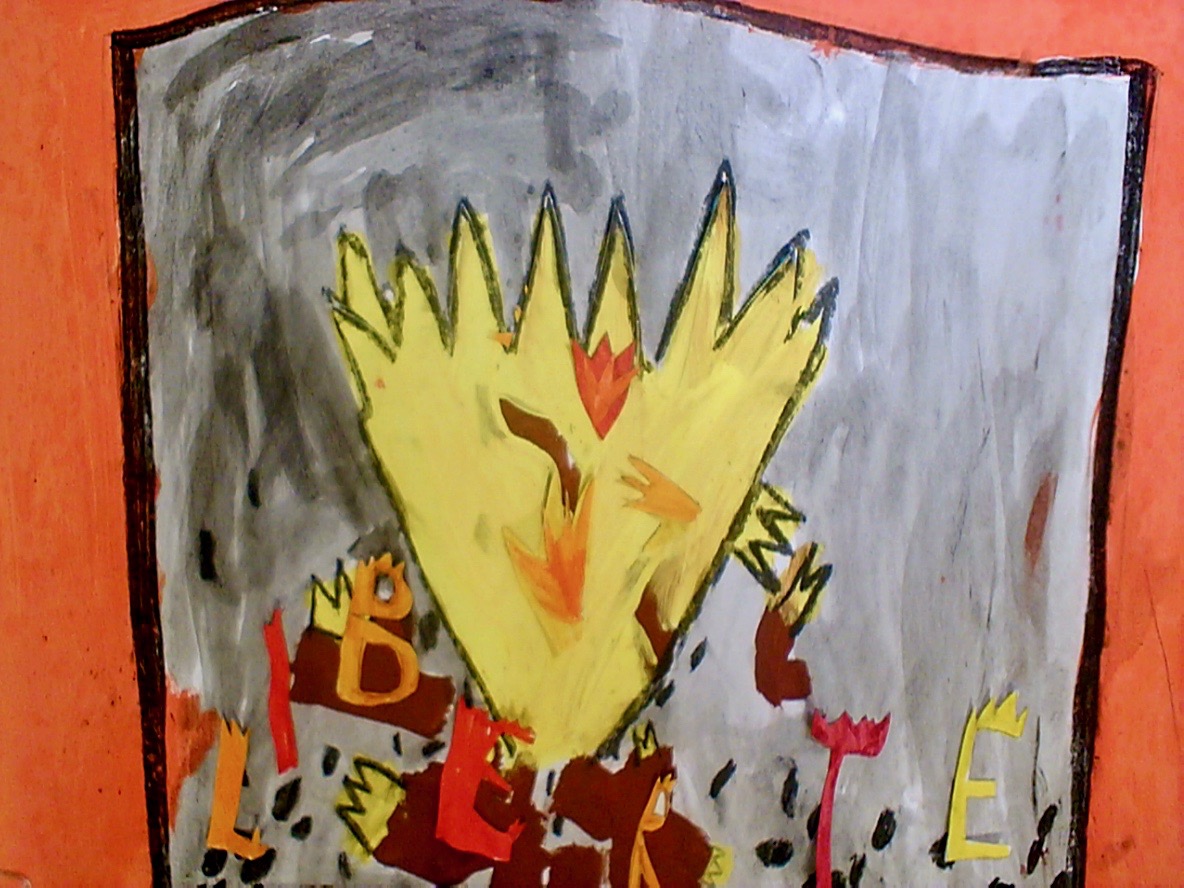 Dessin d'enfants avec du feu et le mot liberté