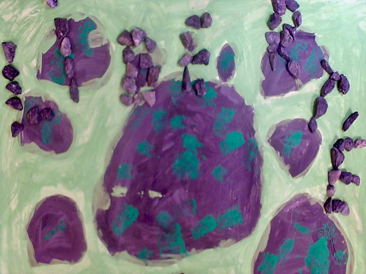 Formation de groupes pour créer les décors : illustrer les mots « cahiers d'écoliers », « pupitre », « arbres », « sable », « neige », « pages lues », « pierre », « sang », « cendre ». Les décors ont été réalisés par groupe de 2, 3, 4 élèves sur une feuille A4. Ces décors ont ensuite été agrandis au format A3 et mis en couleur avec différentes techniques : emploi de gouache, fusain, pastels, encre, feutres. Cette étape a été plus ou moins longue selon les groupes. Cela a permis de démarrer le tournage et l'animation au fur et à mesure, groupe après groupe.