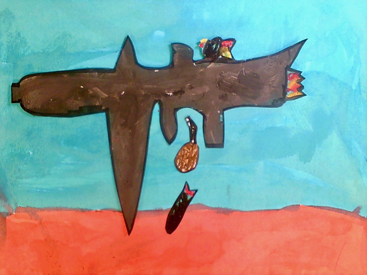 Dessin d'enfants avec un avion bombardant