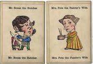 Version traditionnelle : Is Mister Strong the butcher at home? « Is Mrs Strong the butcher’s wife at home? » « Is Master Strong the butcher’s son at home? » « Is Miss Strong the butcher’s daughter at home? » « Yes he/she is. No, he/she's not. » | Shuffle the cards - mélanger les cartes Deal the cards – distribuer les cartes Ask a player for a card. If he has it, you can play again. If he hasn’t, it’s his turn to play. If you have a family, put it on the table. The first player to group all his cards wins the game. |