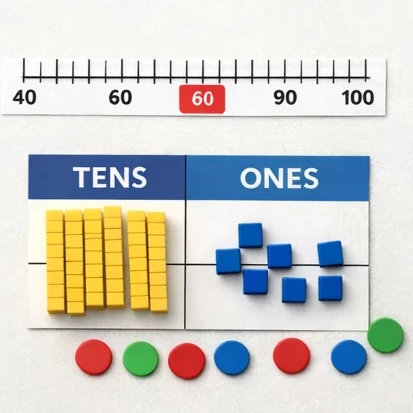 Eléments linguistiques :Explore the components of numbers within 100 – apply knowledge of number bonds – find one more or one less, ten more or ten less – compare numbers on a number line – on a place value chart – order numbers – identify patterns within a sequence of numbers
