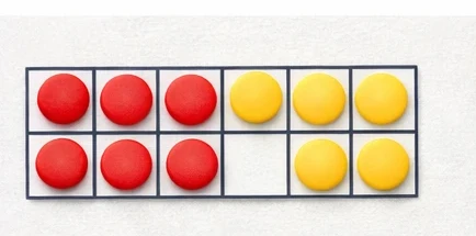 Eléments linguistiques :addition and subtraction. How can I use the pegs to find pairs of numbers that total ten? You’ve put two on that side and left eight on that side. We always have ten. What calculation would that be? Two add eight equals ten. If I’m adding one more here, what’s happening on this side? It’s getting smaller because you’re moving one each time. What sort of calculation is that? Subtraction. And how much am I subtracting? One. It’s going to be one less. If I show this image here, can you write on your white board what it would look like as a number sentence? Ten take away two equals ten. Two add eight equald ten. What’s the same? What’s different? They’ve both got eights, they’ve both got twos and they’ve both got tens. One’s subtraction and one’s adding. What happens if I turn my pegs around? Addition can be any order, the answer is always the same. Eight add two is the same as two add eight.