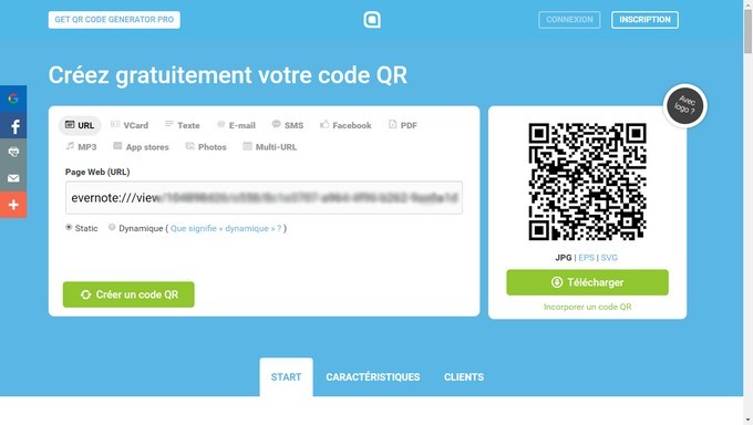 Création d'un compte pour la classe. Application qr-code generator en ligne. http://fr.qr-code-generator.com/