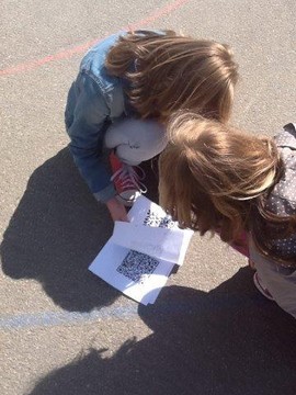 :Chaque groupe de 3 élèves se voit confier une tablette. Chaque groupe essaie de réaliser le maximum de parcours en suivant les consignes enregistrées. Chaque consigne permet de découvrir un nouveau QR-code qui, une fois flashé, donne accès à la consigne suivante.