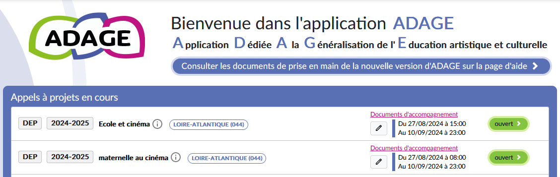Les écoles ayant postulé aux dispositifs 2024-2025 se sont connectées sur le site du cinématographe afin de connaître l’état de leur candidature et procéder à leur inscription sur ADAGE avant le 10 septembre.